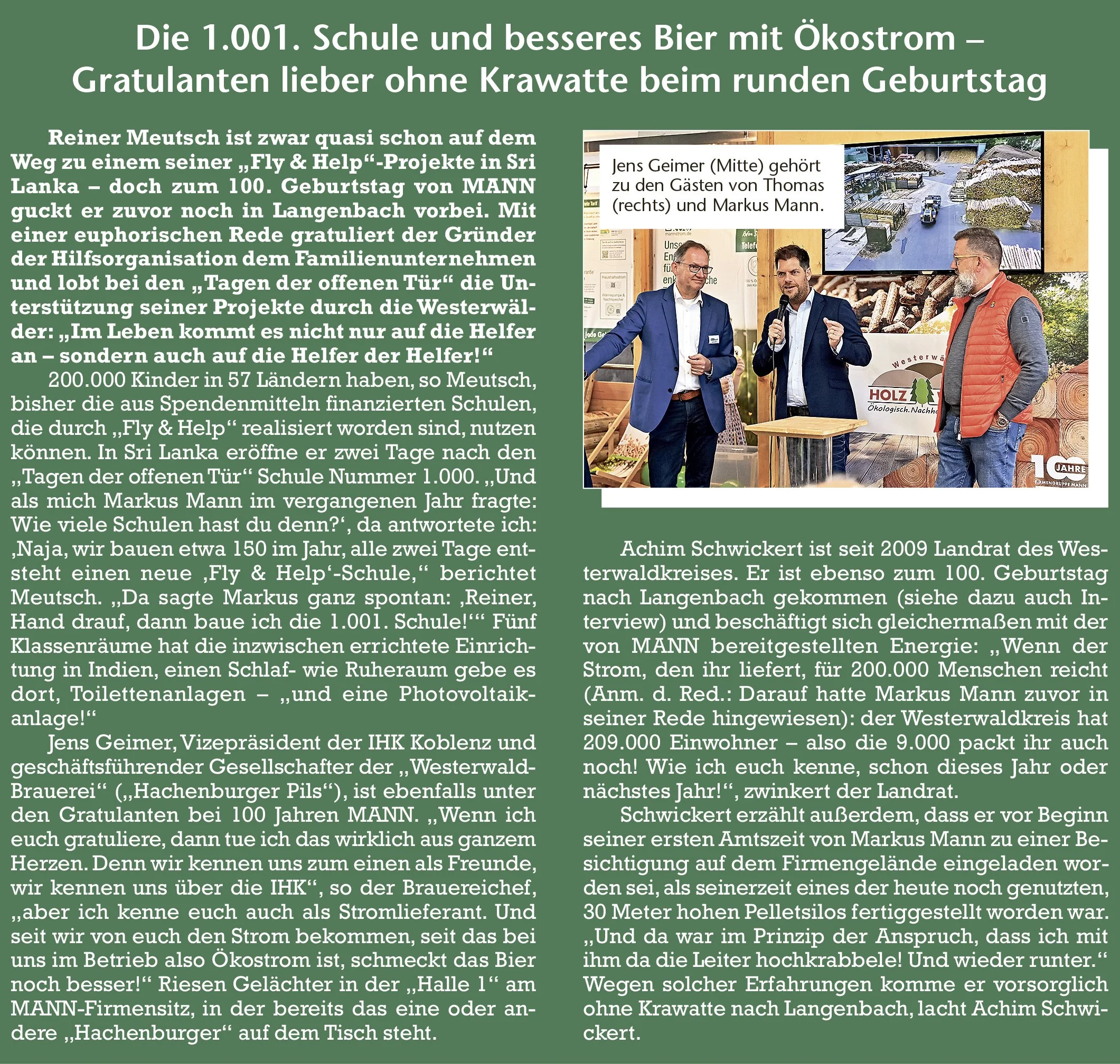 /Achim Schwickert ist seit 2009 Landrat des Westerwaldkreises. In diesem liegt Langenbach bei Kirburg, der Firmensitz der MANN-Gruppe. Der CDU-Politiker schildert im Interview mit Uwe Schmalenbach, dass die wirtschaftliche Bedeutung der Region und ihrer Familienunternehmen zuweilen unterschätzt werde.